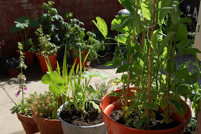 All this green makes for quite a pleasant area to enjoy the sun. The next plan is to plant things in the top of our wall. And so bit by bit, we transform our concrete jungle.